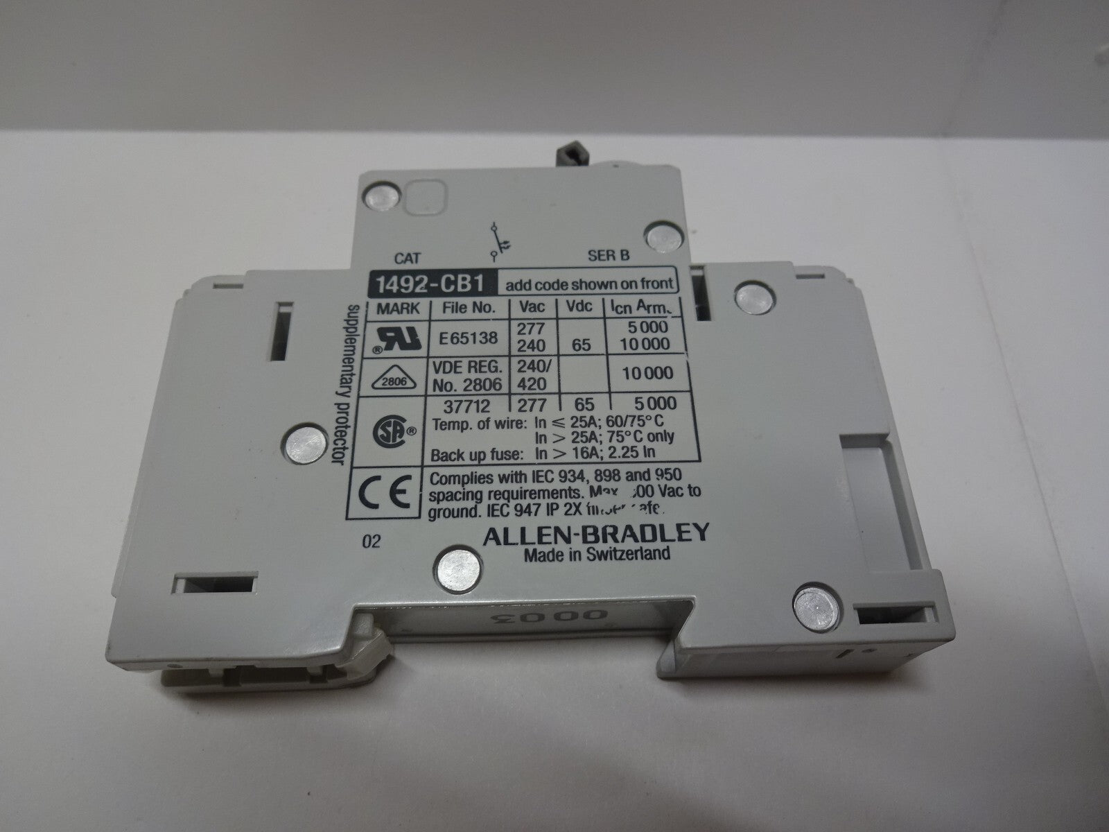 ALLEN BRADLEY 1492-CB1-G010 / G 010 / 1A 1P CIRCUIT BREAKER SERIES B