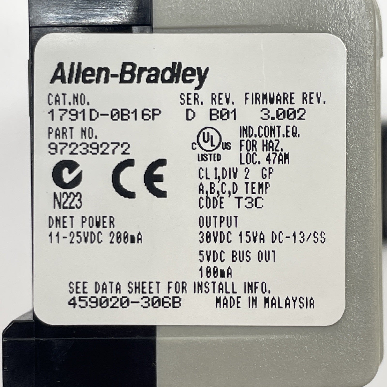 ALLEN BRADLEY 1791D-0B16P DeviceNet I/O Module 1791D0B16P