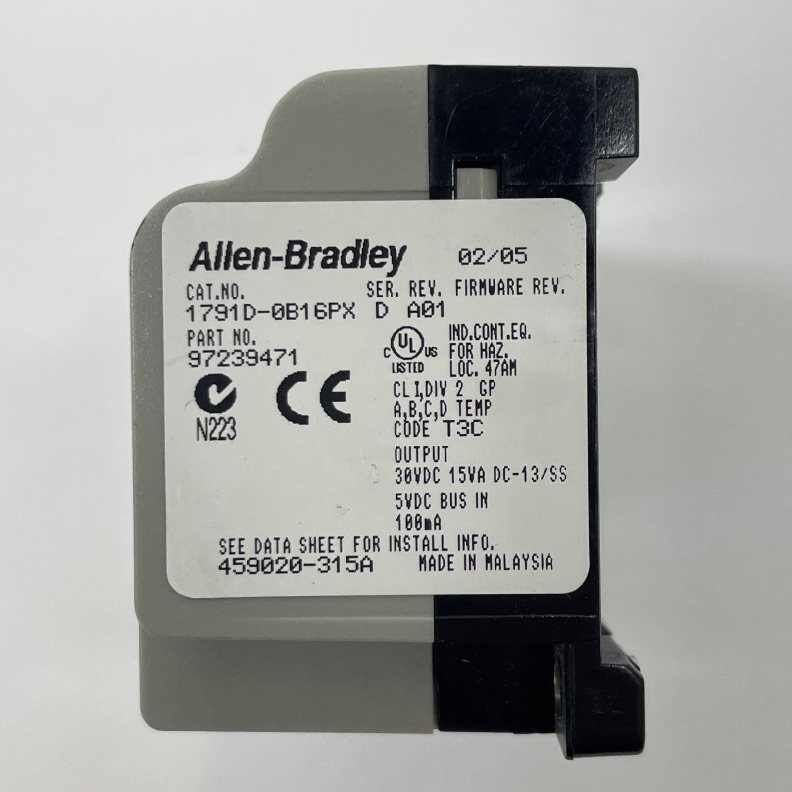 ALLEN BRADLEY 1791D-0B16PX /D DC POWER COMPACT BLOCK I/O 16 OUTPUTS 30VDC