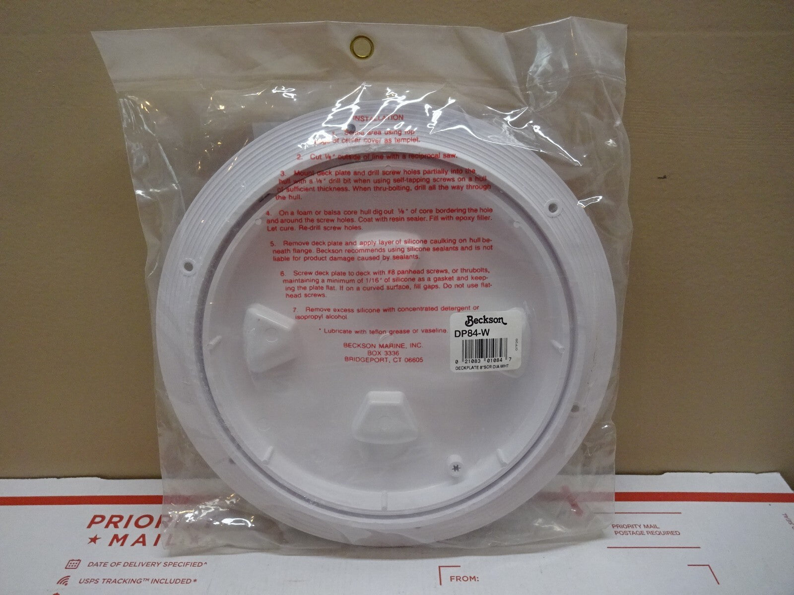BECKSON DP84-W / SCREW OUT DECK PLATE / 8 INCH NON SKID PEBBLE WHITE / NEW