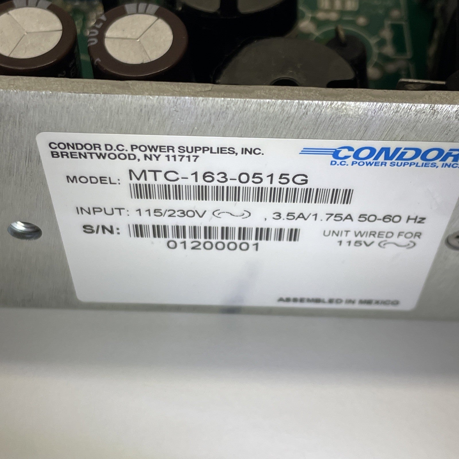 CONDOR MTC-163-0515G / DC POWER SUPPLY AVIATION INPUT 115/230V 3.5A 1.75A /