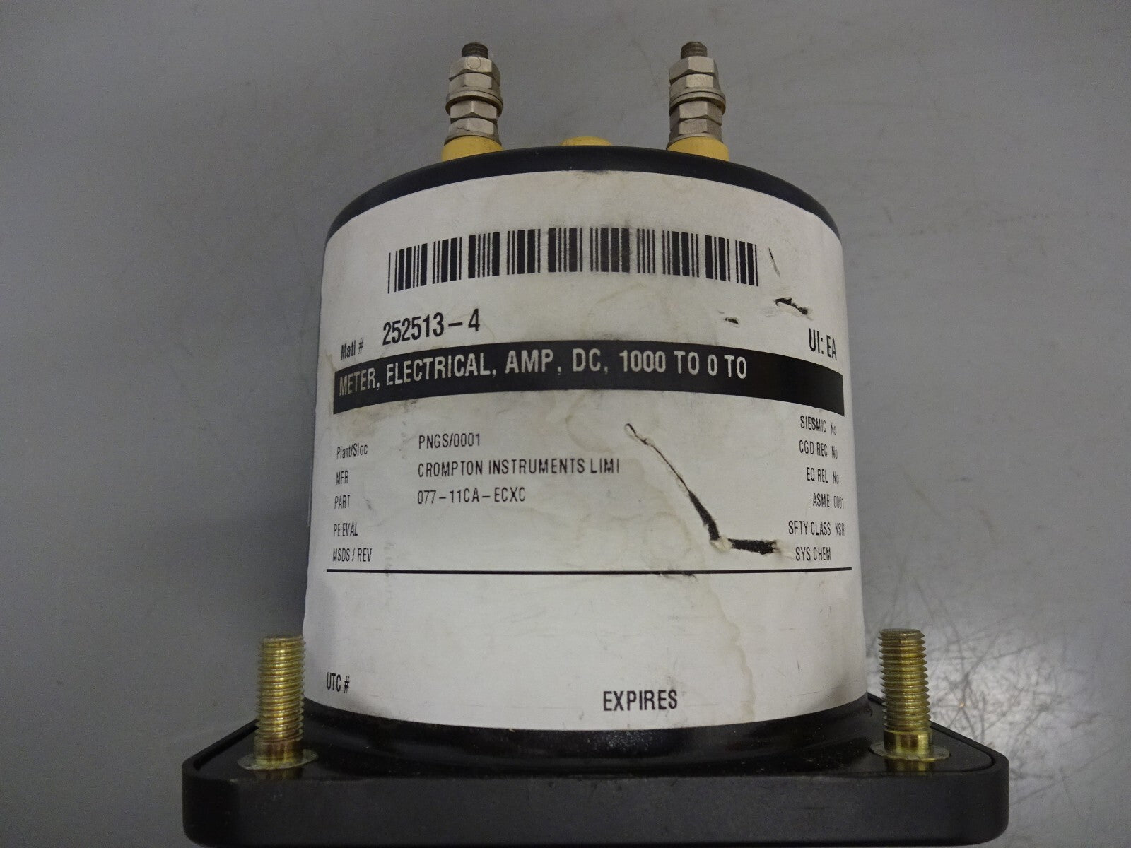 Crompton 077-11CA-ECXC DC Ammeter 1000-0-1000 A Panel Meter