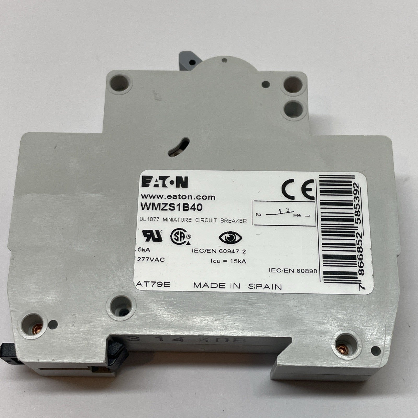 Eaton WMZS1B40 1-Pole DIN Rail Circuit Breaker 40A 5kA Type B SP UL1077