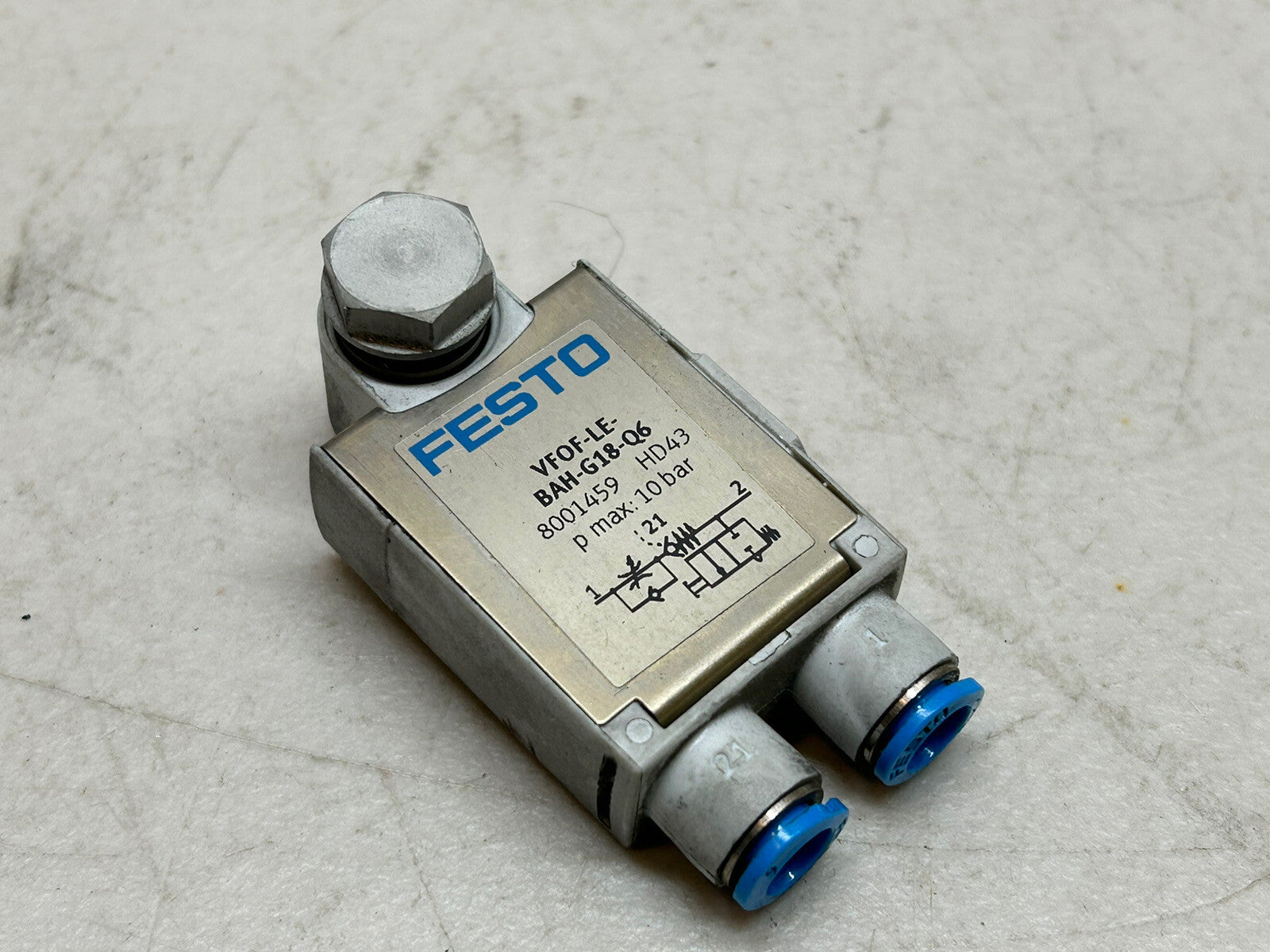 FESTO VFOF-LE-BAH-G18-Q6 / 8001459 ONE WAY THROTTLE VALVE HD43 P MAX 10 BAR
