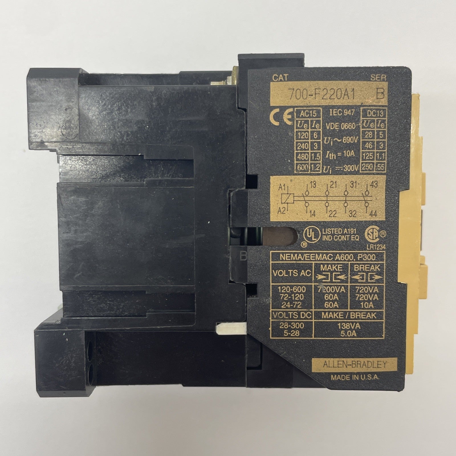 (LOT OF 3) Allen Bradley 700-F220A1 Ser B Relay 10A 600VAC 110/120V