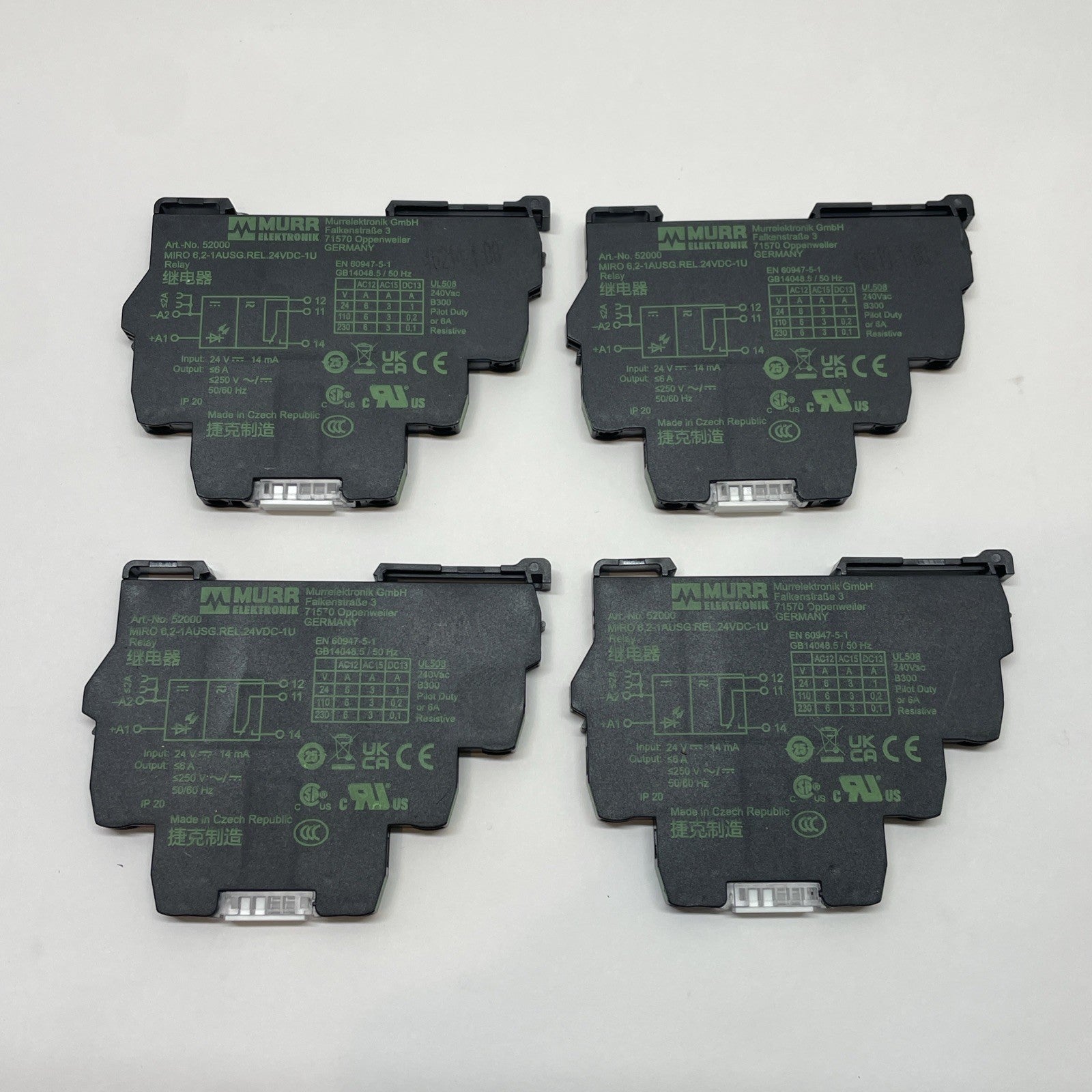 (LOT OF 4) Murr Elektronik 52000 24 VDC DIN Rail Output Relay SPDT 6A