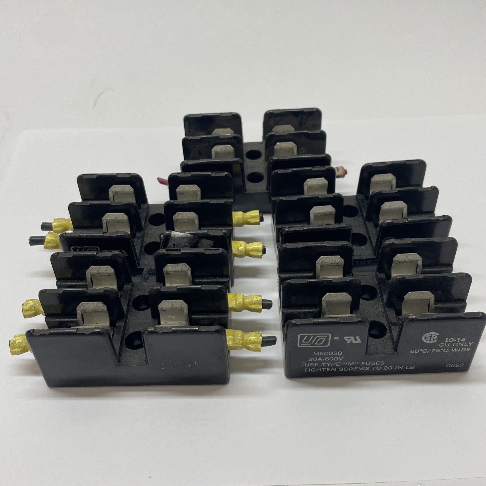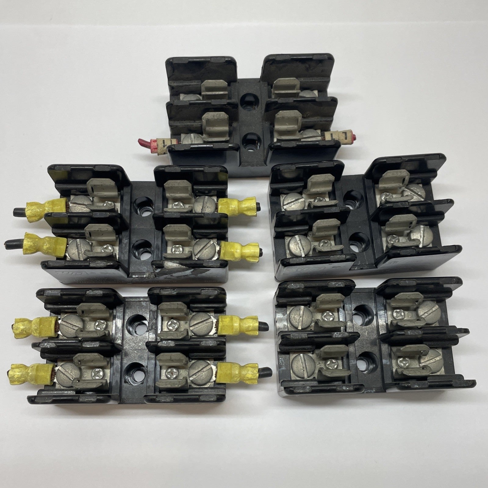 (LOT OF 5) Bussman M60030 Fuse Holder Block 30A 600V Type M Fuses 10-14 AWG Wire