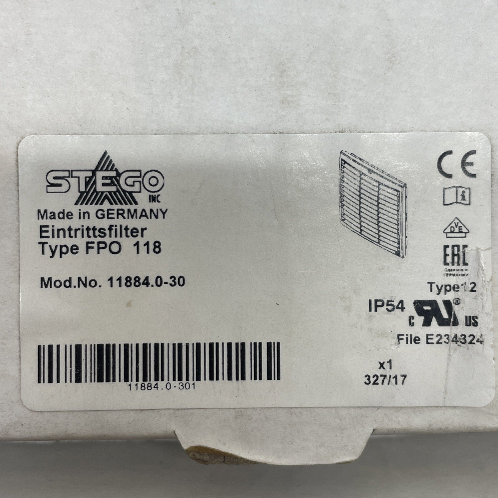 New Stego 11884.0-30 Vent for OUT Filter Fan 322mm X 322mm X 25mm FPO 118