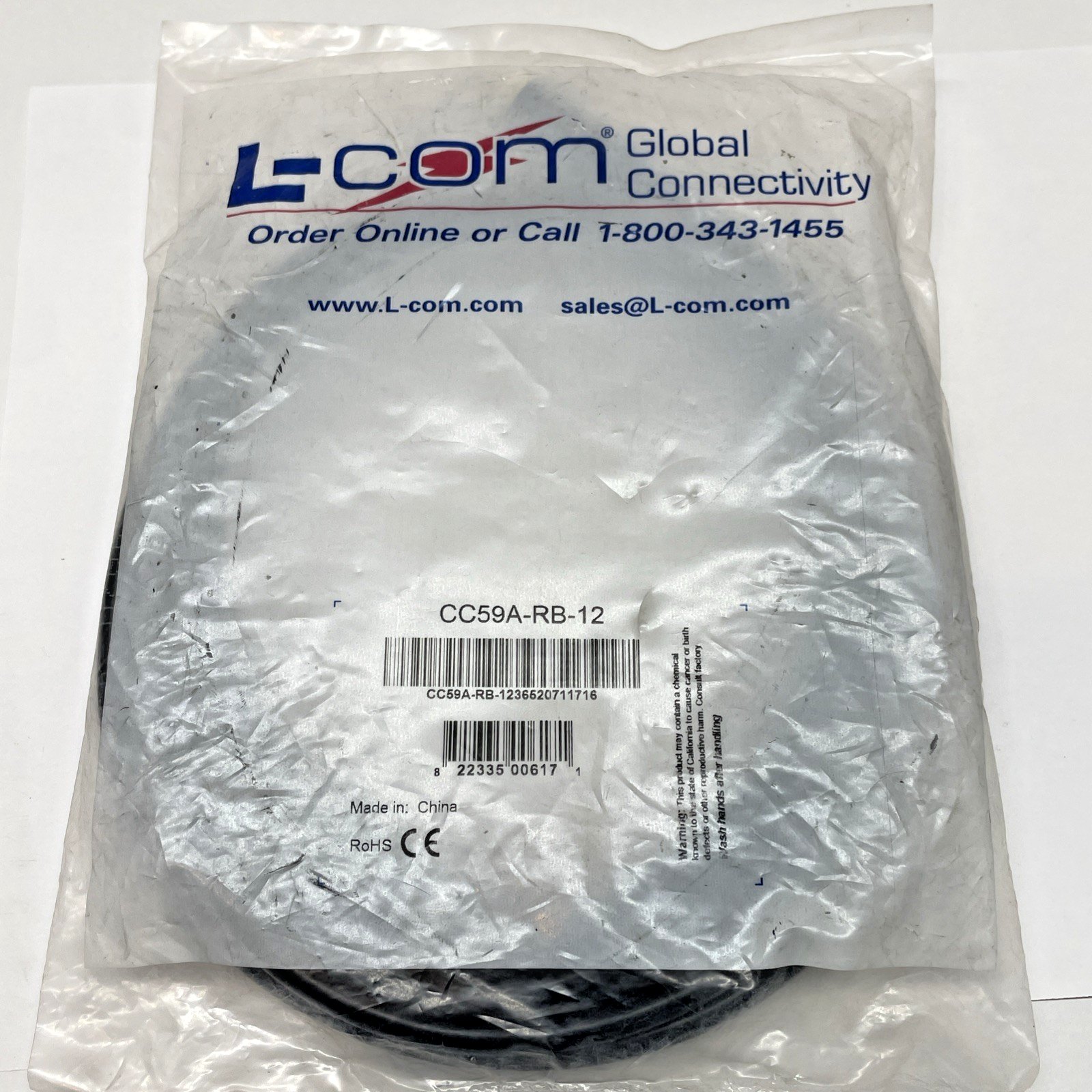 RG59A Coaxial Cable, RCA Male / BNC Male, 12.0 ft - NEW