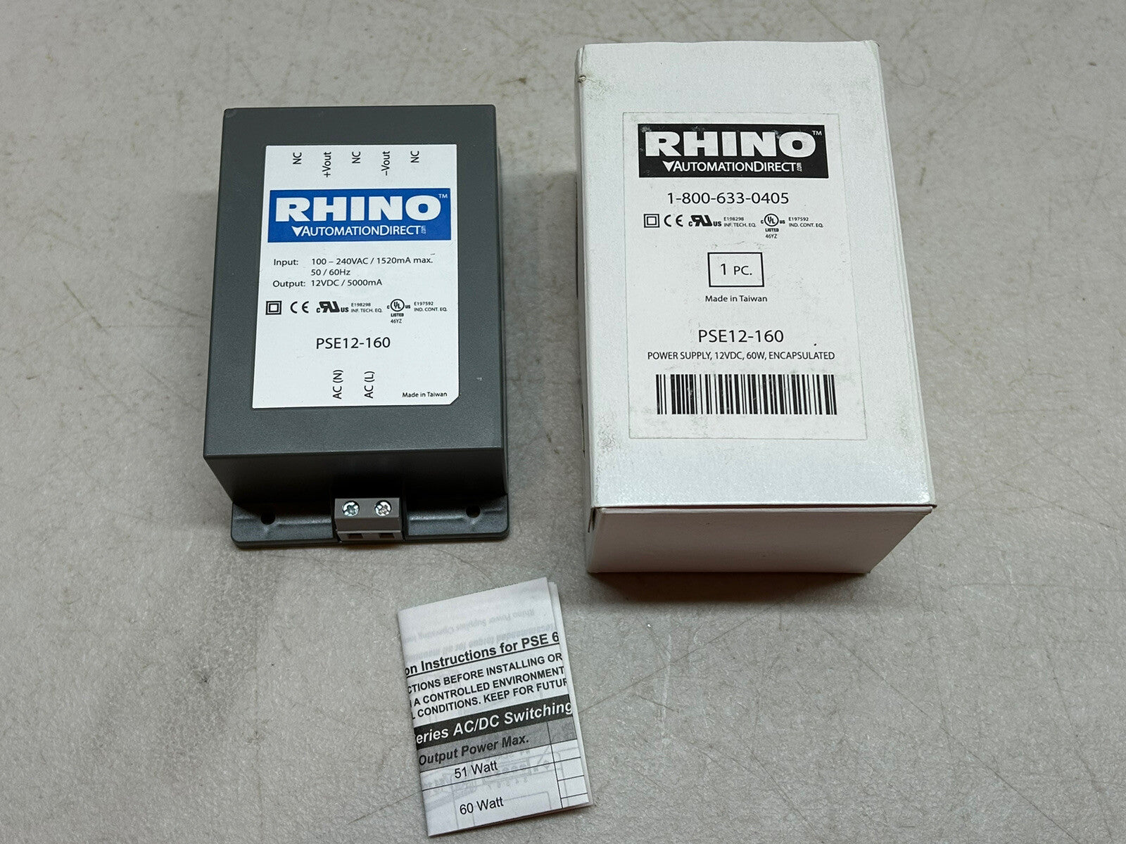 RHINO PSE12-160 Switching Power Supply 12 VDC 5A 60W 120/240VAC Encapsulated