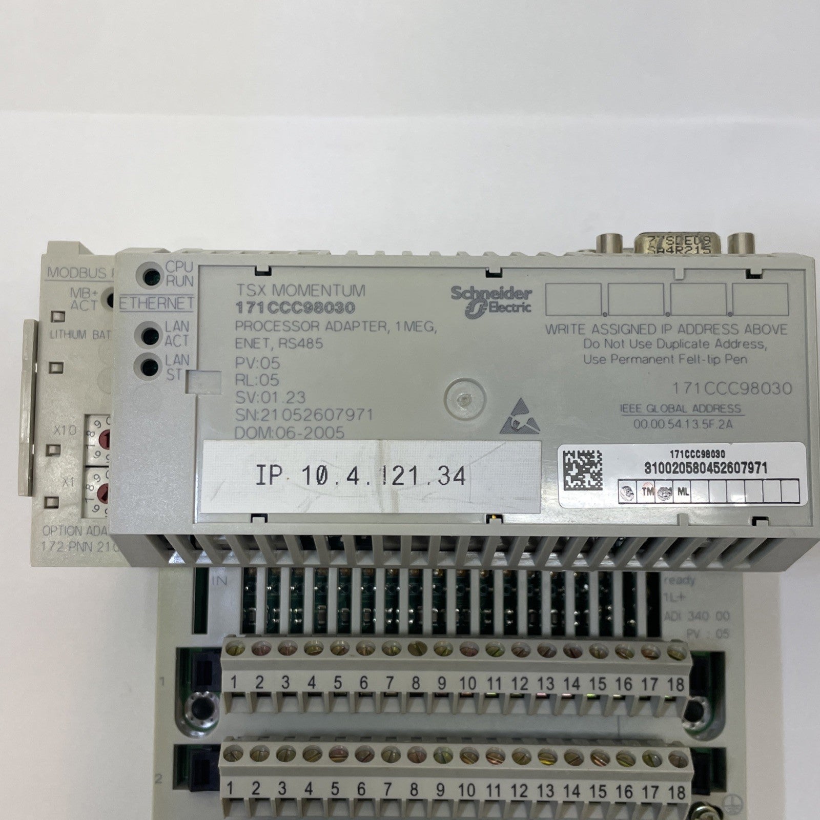 SCHNEIDER ELECTRIC 171CCC98030 PROCESSOR ADAPTER 1 MEG WITH 170ADM35010 I/O BASE