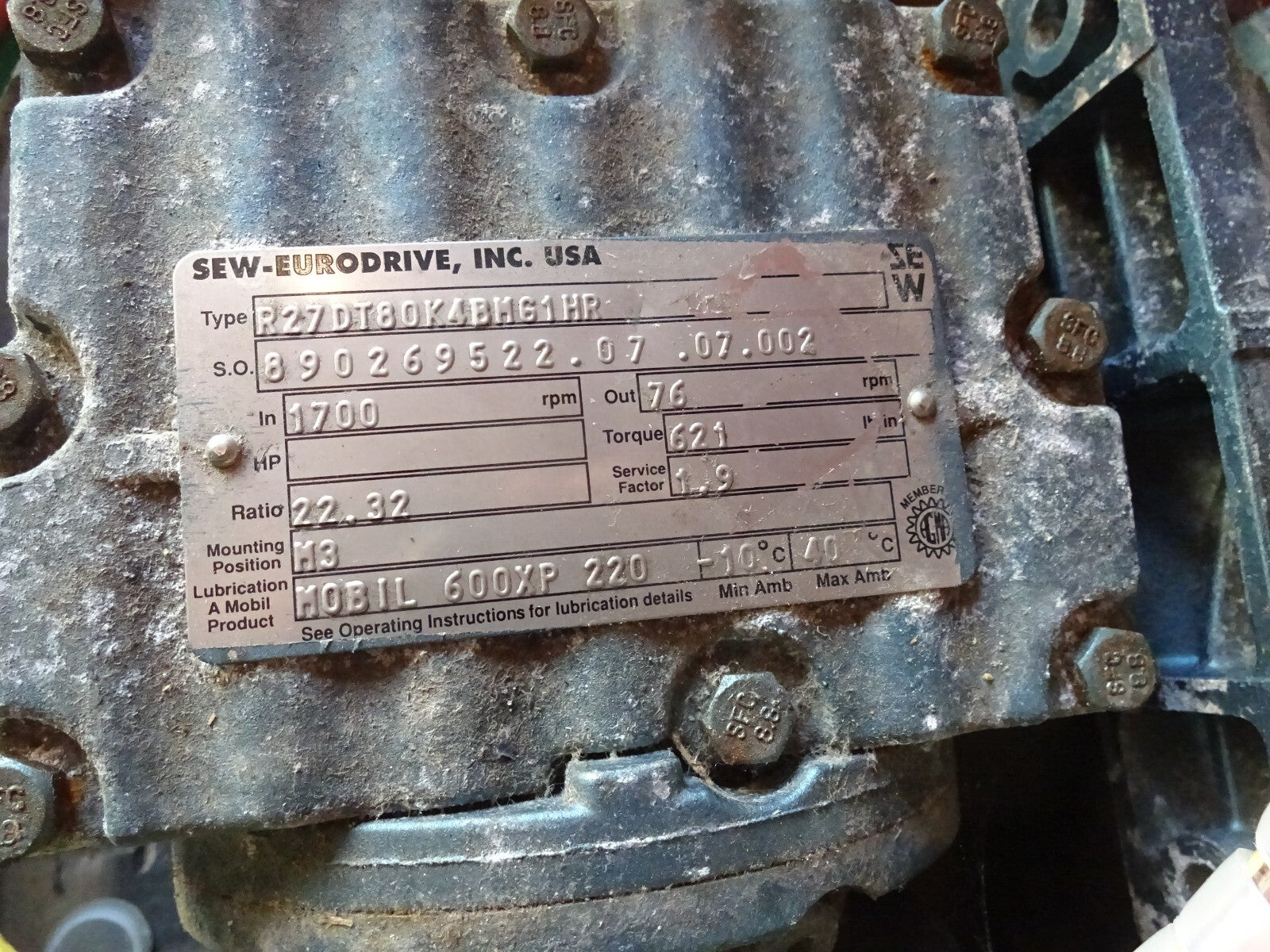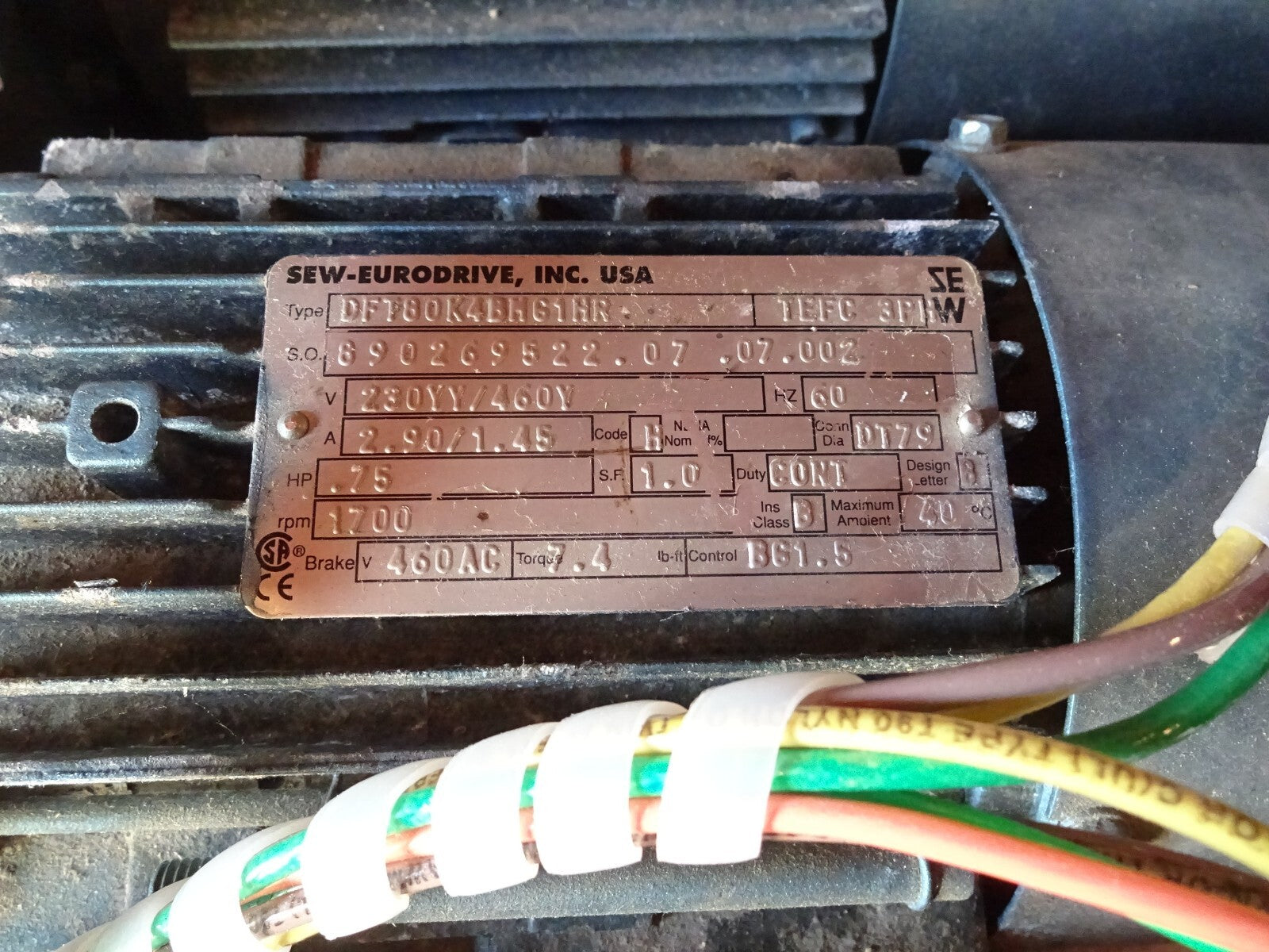 SEW EURODRIVE R27DT80K4BM61HR / DFT80K4BM61HR 3PH 230YY/460Y V 2.90/1.45A .75HP