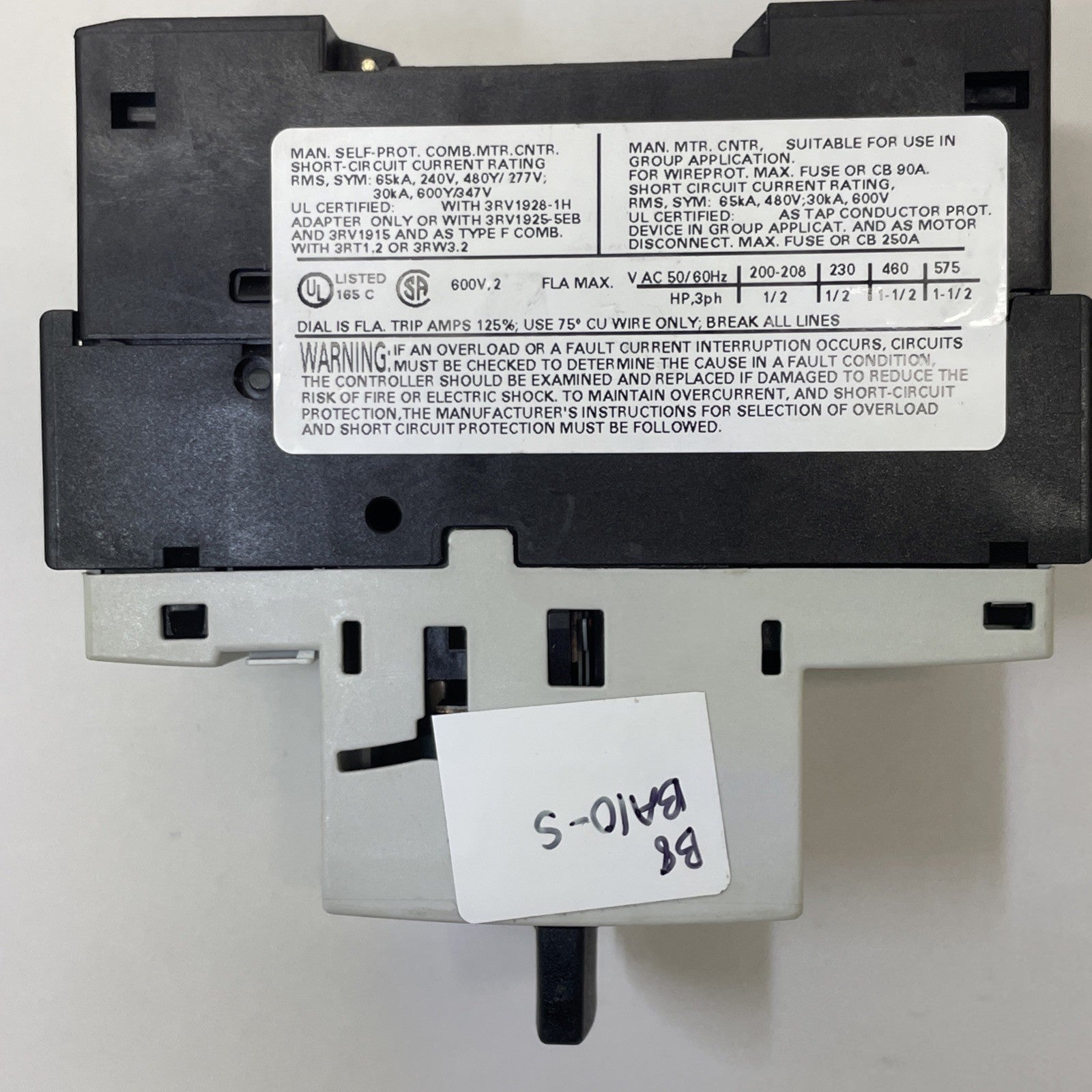 SIEMENS 3RV1021-1BA10 SIRIUS MANUAL MOTOR STARTER 1.4-2A