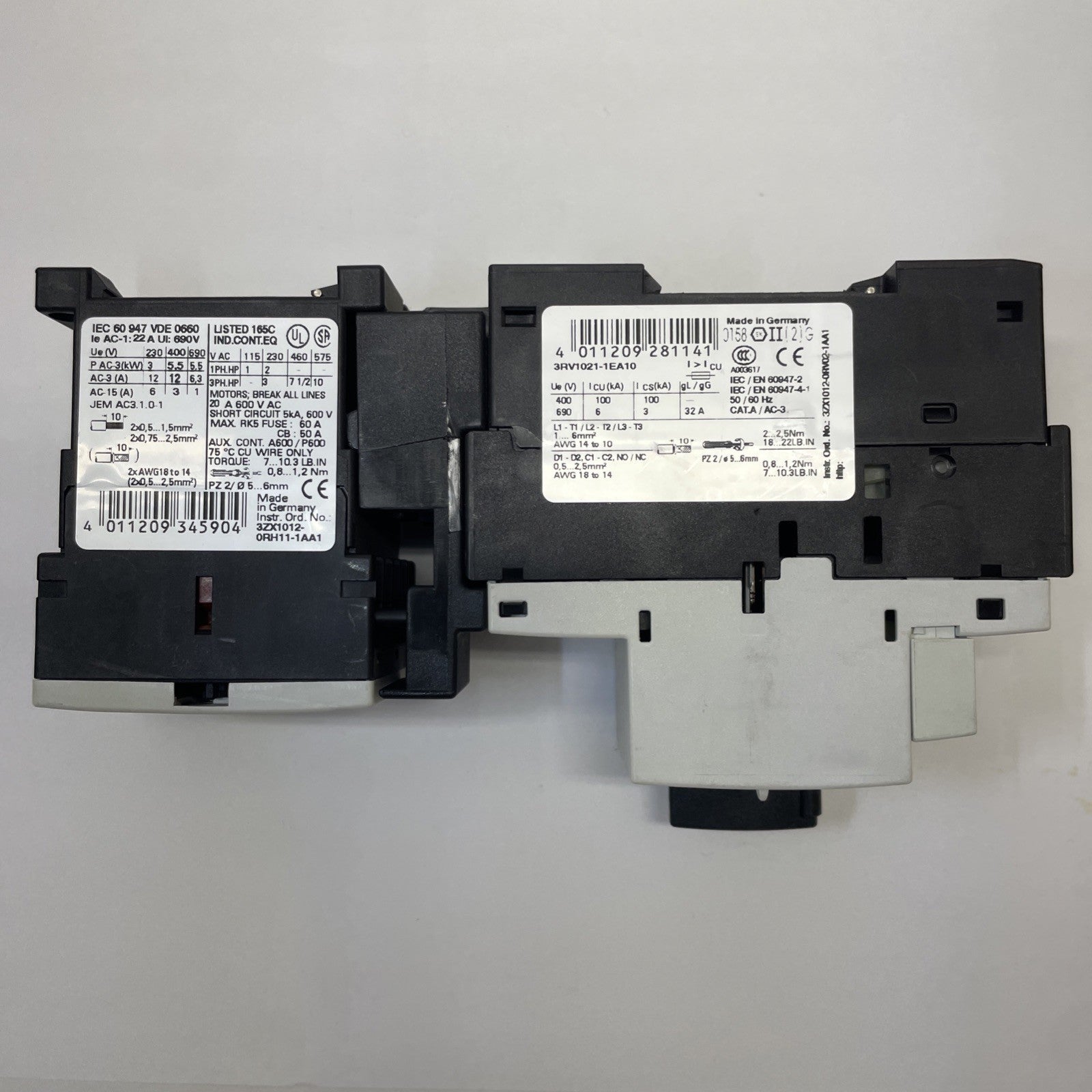SIEMENS 3RV1021-1EA10 SIRIUS MANUAL MOTOR STARTER WITH 3RT1017-1AK61 CONTACTOR