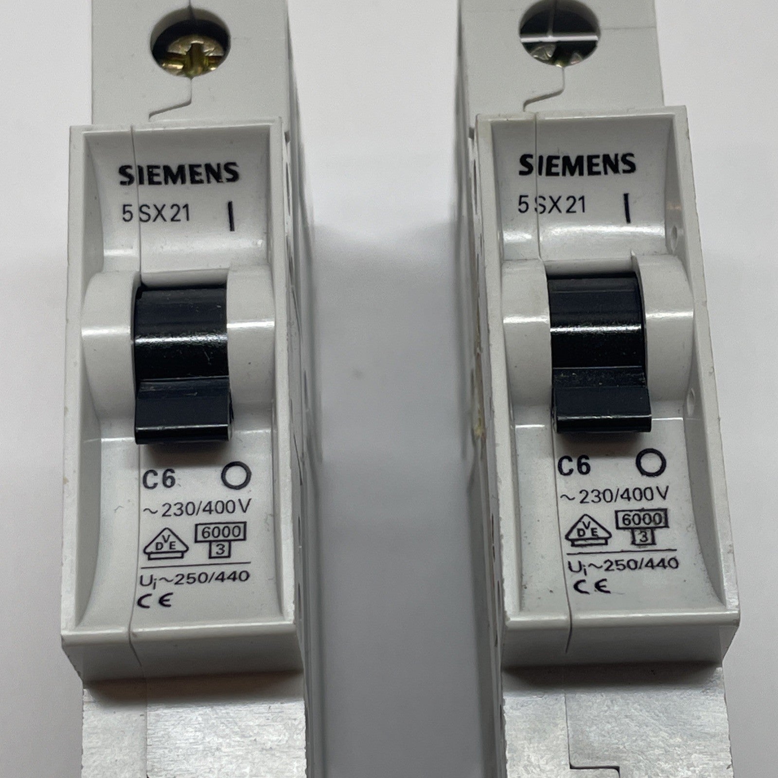 SIEMENS 5SX21-C6 CIRCUIT BREAKER 6A 230/400V 1 POLE C-CURVE (LOT OF 2)