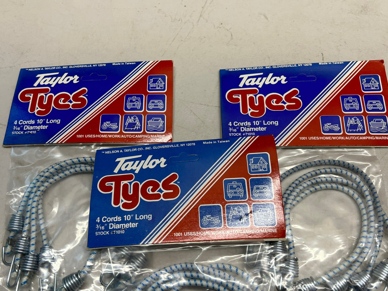 TAYLOR TYES 71010 BUNGEE CORD SET 3/16" X 10" LONG / LOT OF 3 PACKS OF 4 CORDS