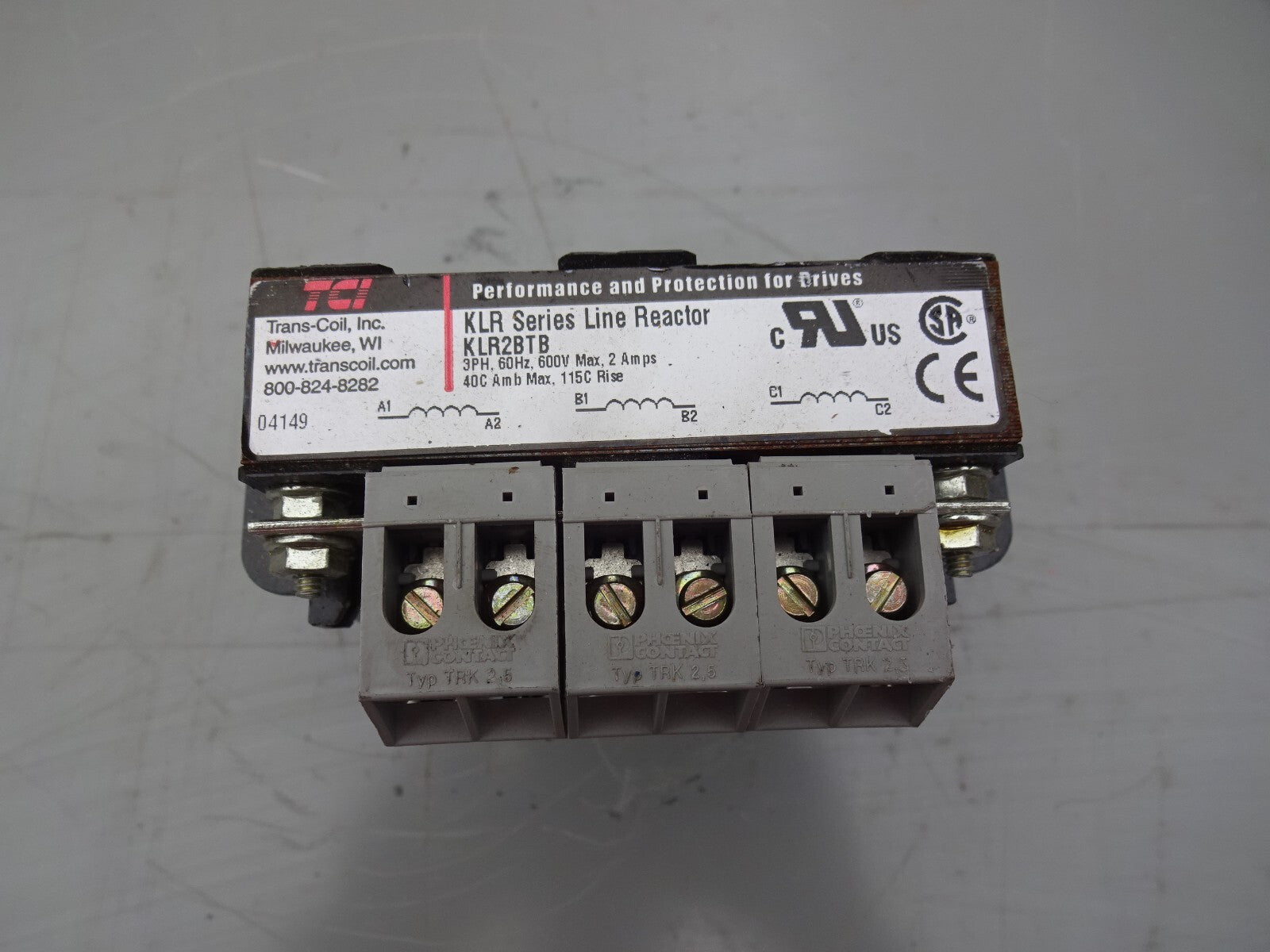 TCI TRANS-COIL KLR2BTB LINE REACTOR KLR SERIES 3PH / 60HZ / 600V / 2A MAX