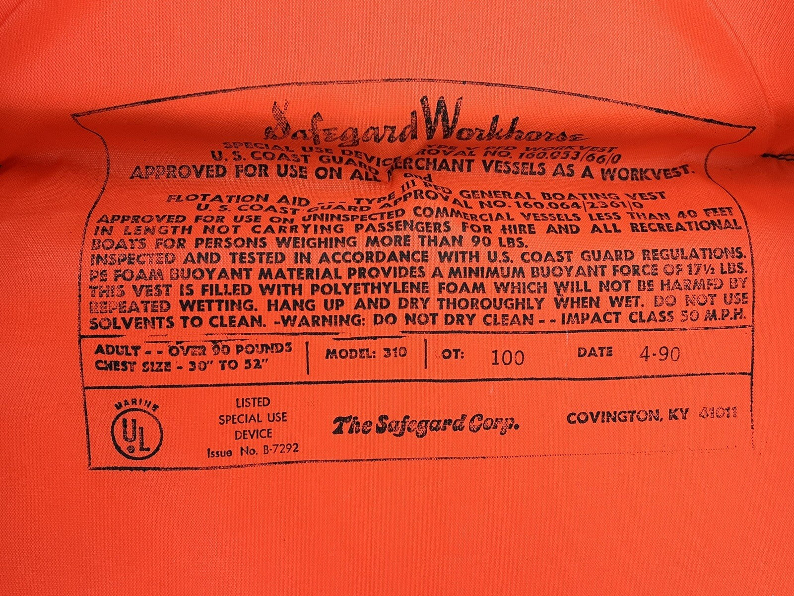 VTG SAFEGARD MODEL 310 / WORKHORSE MERCHANT VESSEL LIFEJACKET ADULT OVER 90 LBS